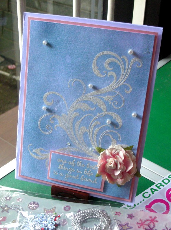 I have several MS border punches, and I made several cards with those punches. The purpose was to show my friends in Multiply account that they can buy those have from me. You know that MS punches are not that easy to find in my country since they are sold abroad and quite expensive.